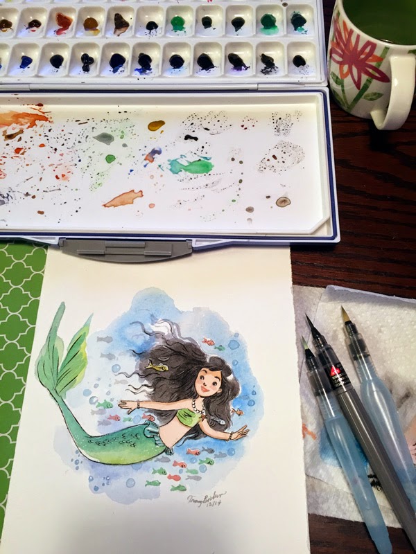 Here are process shots of one of the gift watercolors: