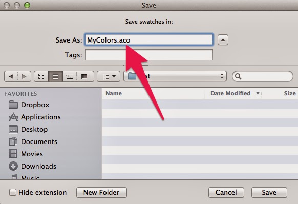 Save the .aco file. This is Photoshop's color swatch file extension.