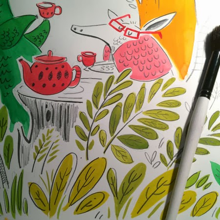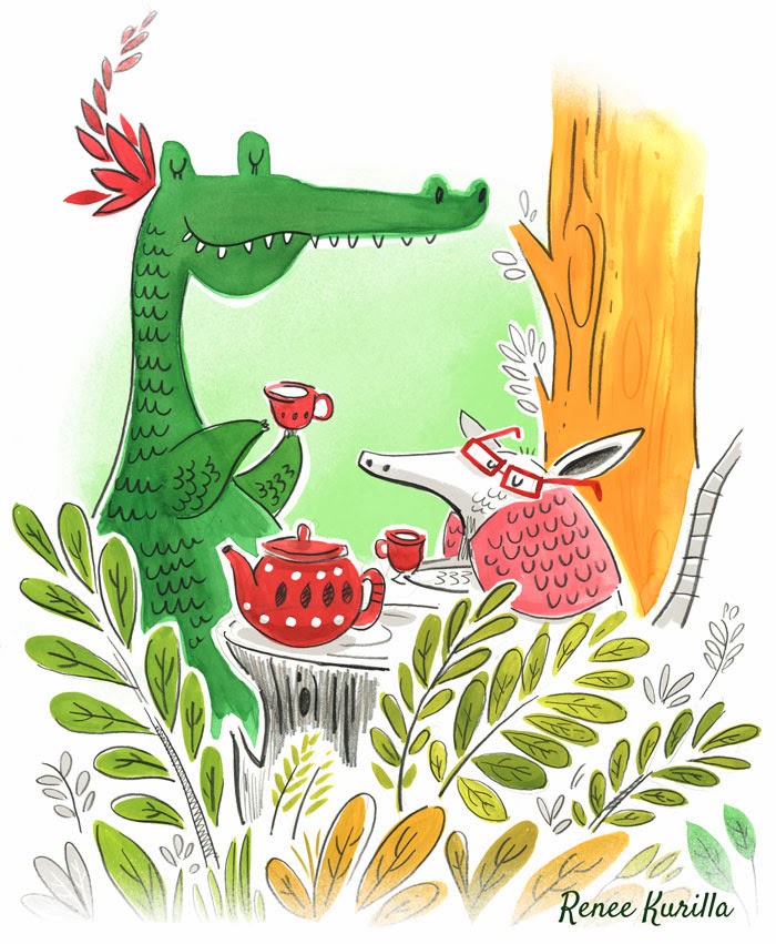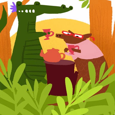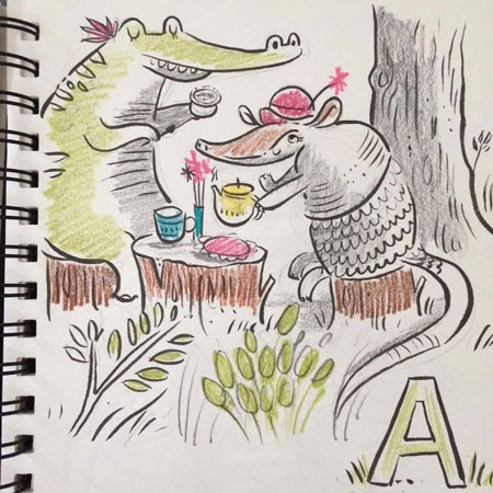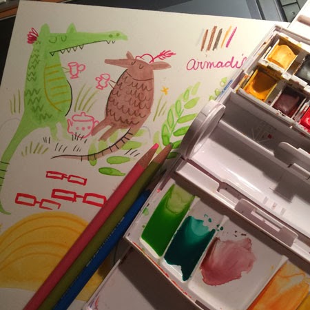 But that Alligator and Armadillo tea party got me excited, so I took it to Photoshop to color it as fast as possible. Why? Because my skills in Photoshop currently surmount my Paper skills...it's a crutch.