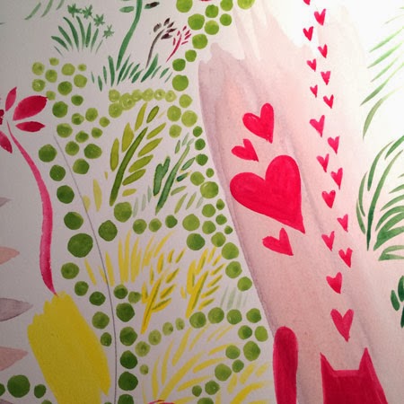 But, I was missing the vibrancy and saturation. I know that it's possible to attain this with watercolor, but I haven't figured out how to get there yet. Then, I remembered the gouache set I got for Christmas and started to play again with yet, another new medium.