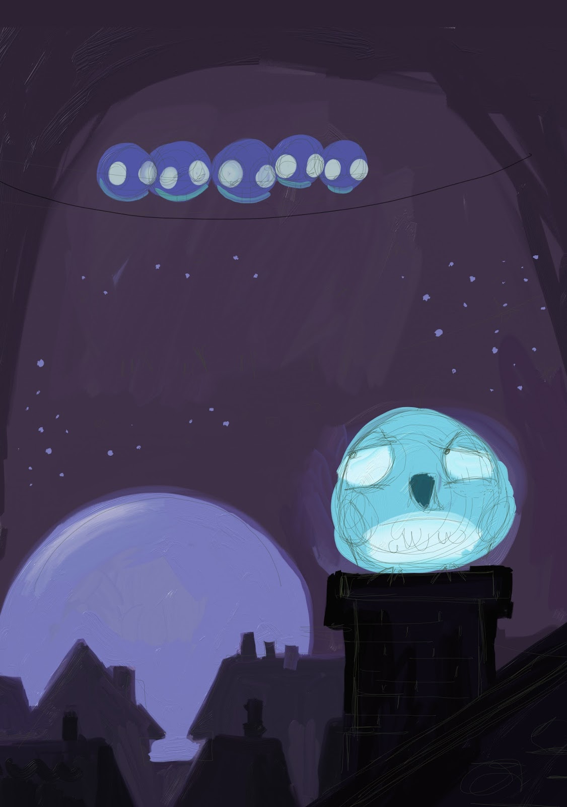 This particular piece was an experiment from 2008 or so. My original goal was to paint this on canvas, so my first color study was very sloppy with globs of color and sketchy lines. The painting never came into fruition, and the color study sat in my "unfinished art" folder for years. It looked like this: