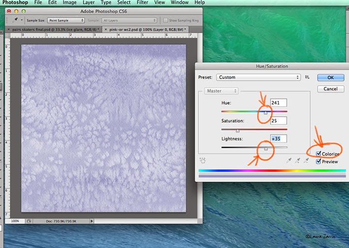 I decided the yellow background wasn't working so I took this old watercolor and salt painting into Photoshop to colorize and lighten it.