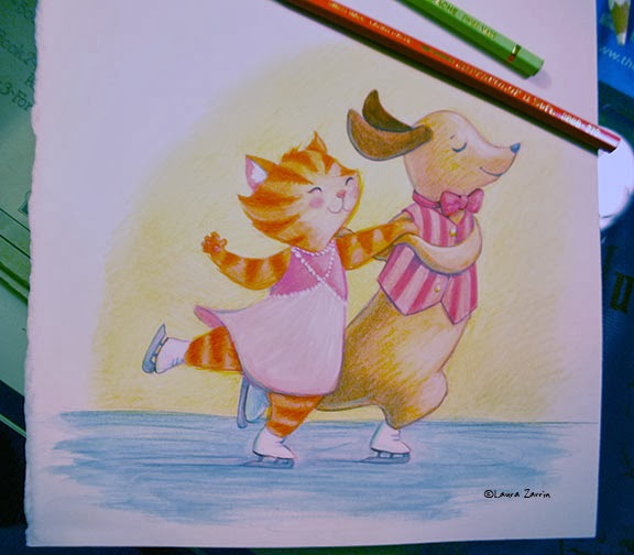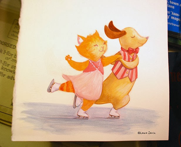 Here I've laid in the basic colors in gouache on the figures. There's not much detail, yet.