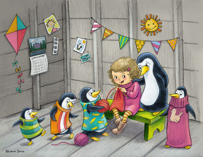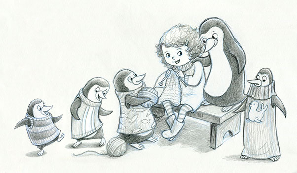 Snopes isn't sure about that one. Well that gave me a great idea! I imagined a little girl knitting sweaters for penguins. Now to write a story to go along with it (which needs to include chickens).